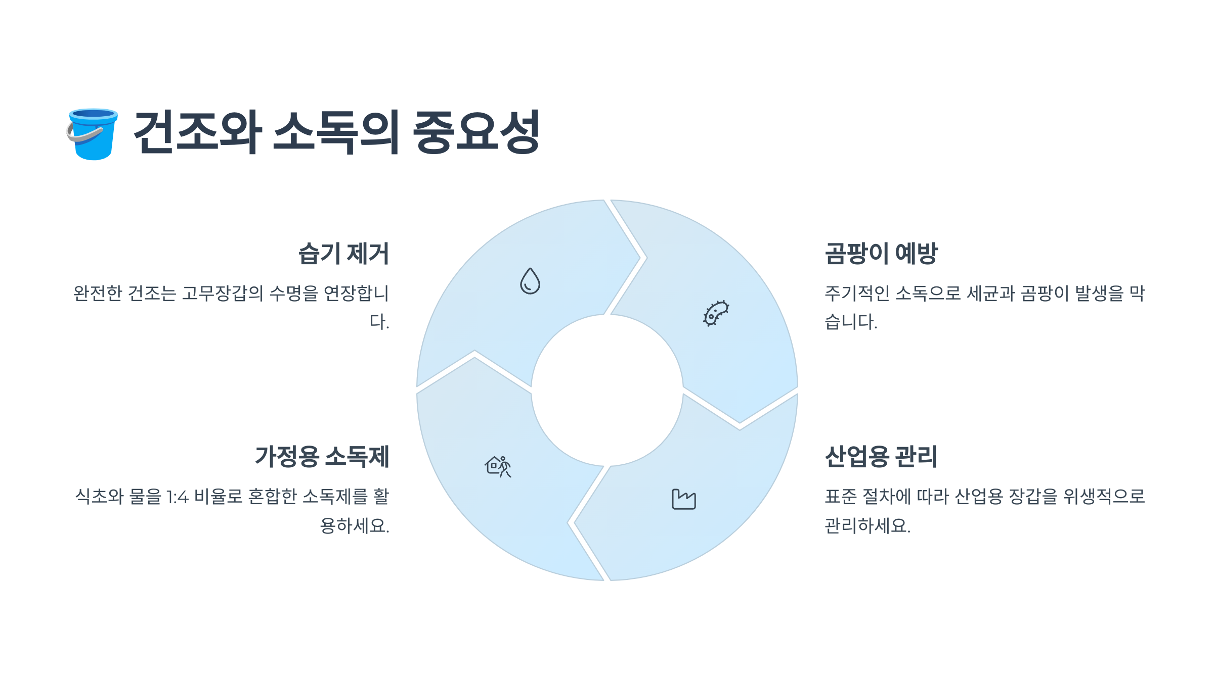 고무장갑의 수명 연장과 위생 유지를 위해서는 건조와 소독이 필수예요. 물에 젖은 상태로 보관하면, 고무장갑은 금방 냄새가 나고 세균이 번식할 수 있어요. 사용 후엔 물기를 완전히 제거하고, 통풍이 잘 되는 곳에 걸어두는 게 좋아요. 특히 장갑을 뒤집어서 바람이 잘 통하도록 하는 게 가장 중요하답니다.