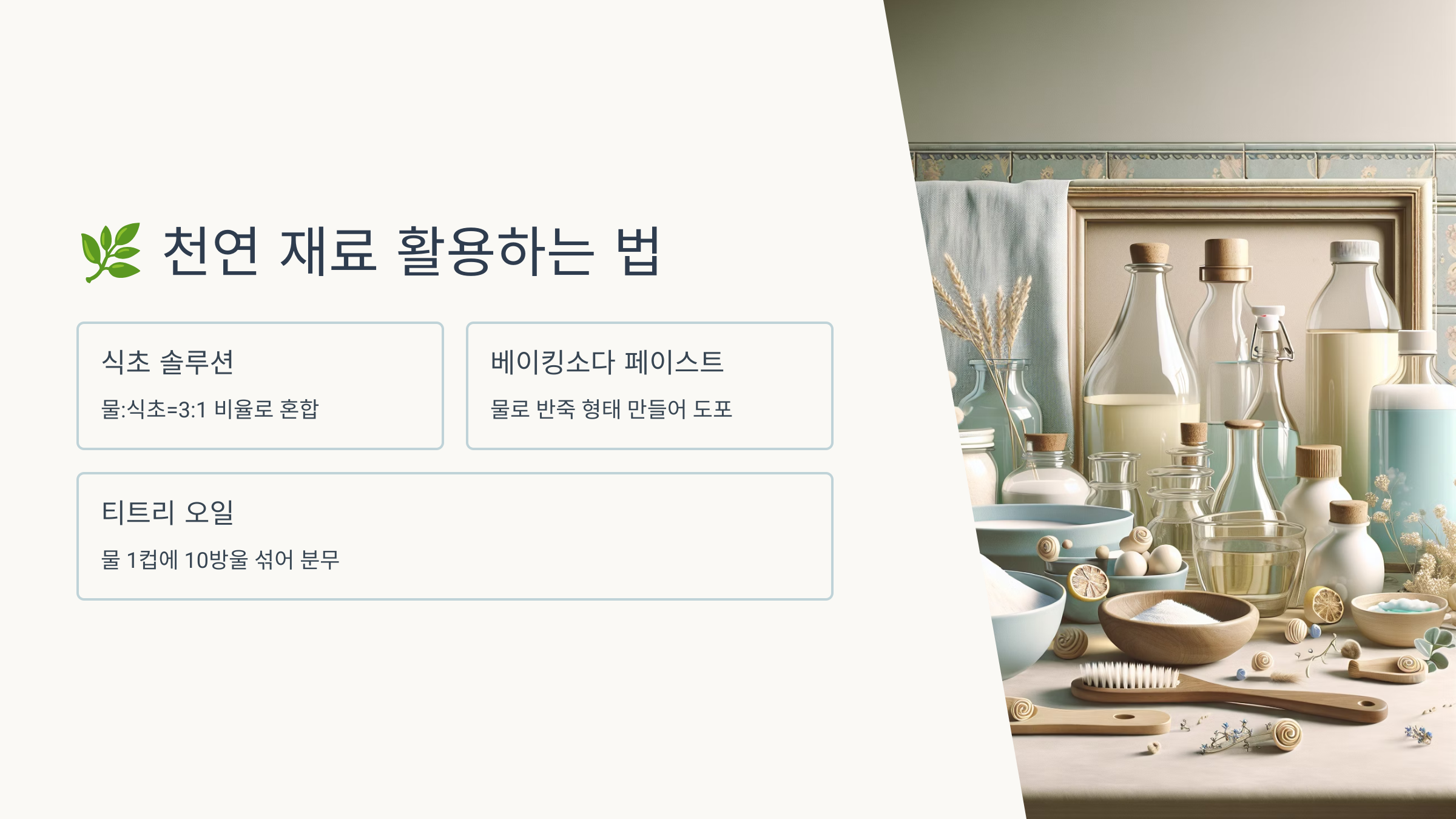 화학 세제가 부담스럽다면 이런 천연 재료들을 활용해 보세요. 안전하면서도 효과적인 곰팡이 제거가 가능하답니다. 특히 아이 키우는 집에서 강추해요! 👶🐶