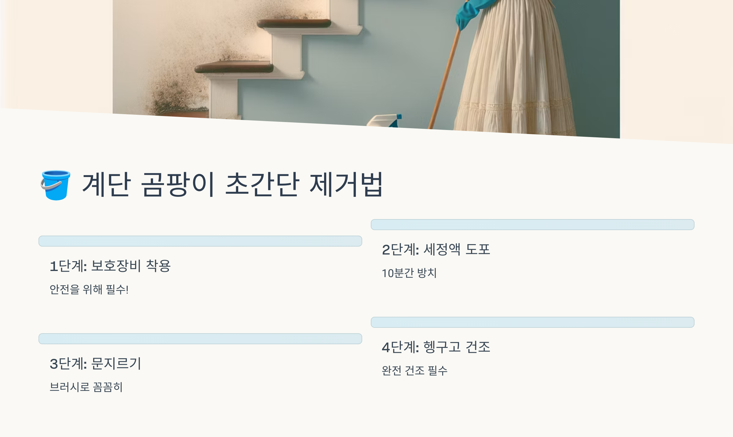 계단은 생각보다 집 안 위생에서 큰 영향을 주는 공간이에요. 위치와 조건에 맞는 관리법만 잘 지켜도 곰팡이 없는 깨끗한 환경을 유지할 수 있답니다 💯