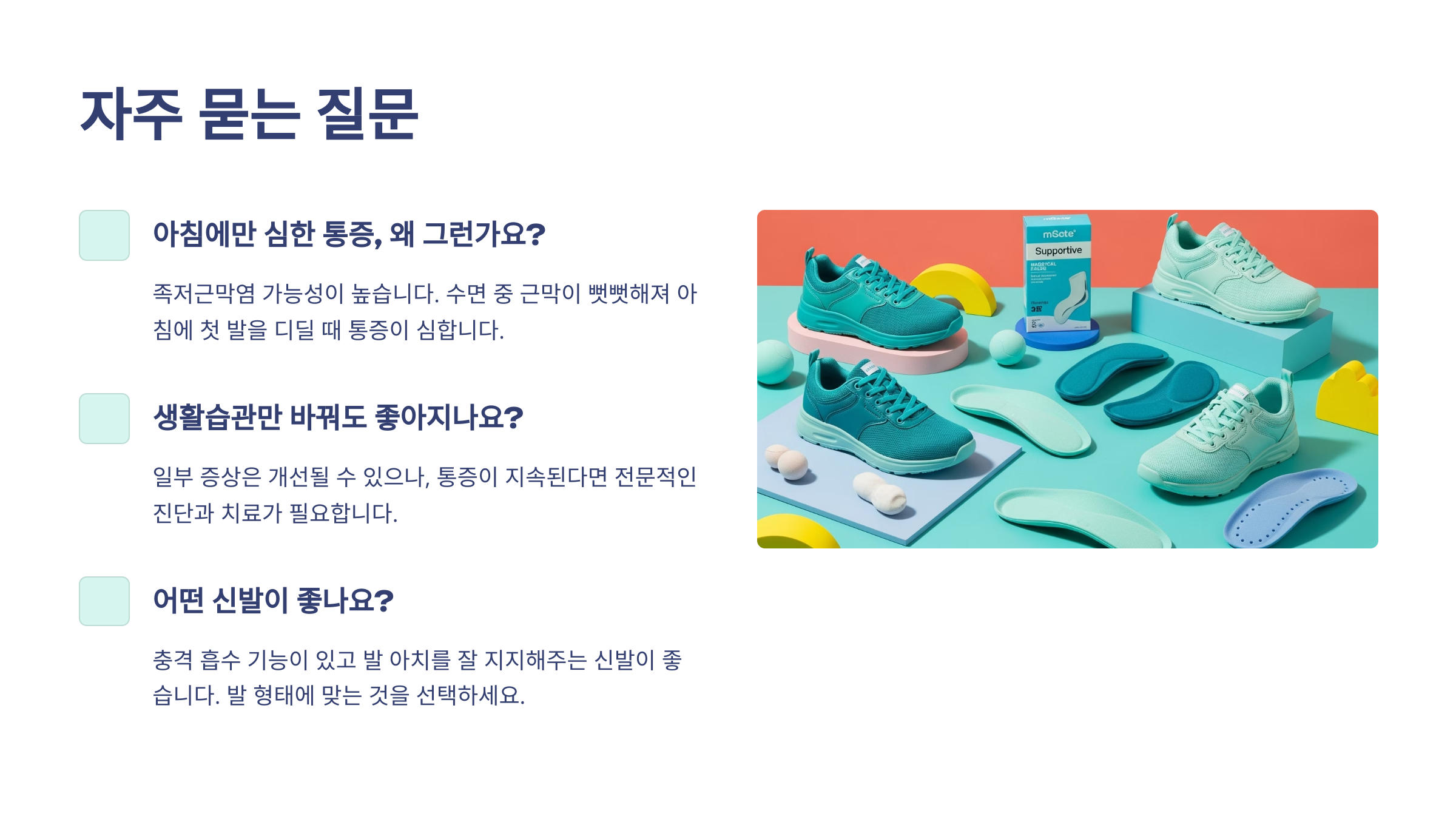 Q1. 아침에 첫발을 디딜 때 발바닥이 특히 아픈 이유는 뭘까요?