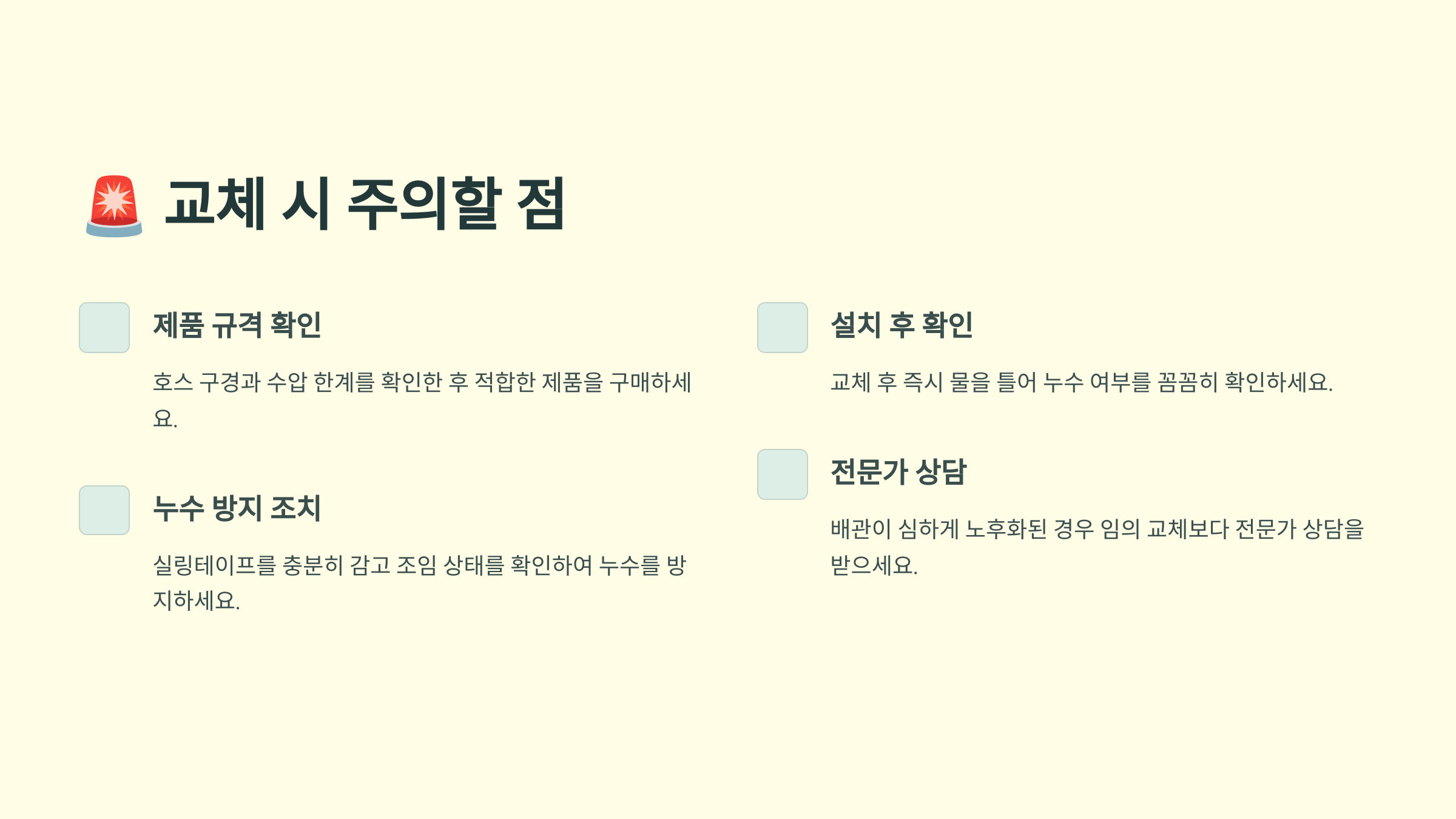 샤워기 교체는 간단하지만 몇 가지 주의할 사항을 간과하면 오히려 누수나 고장이 생길 수 있어요. 지금부터는 수압 샤워기 교체 시 반드시 체크해야 할 중요한 포인트들을 알려드릴게요. 🔍