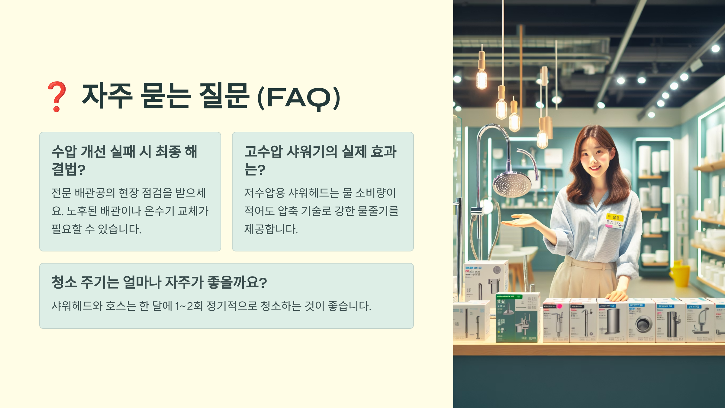 위의 팁을 하나씩 적용해보면, 이전과 비교도 안 되게 물줄기가 시원해지는 걸 직접 느낄 수 있어요. 완전한 수압의 자유, 이제 내 손에 달려 있어요!