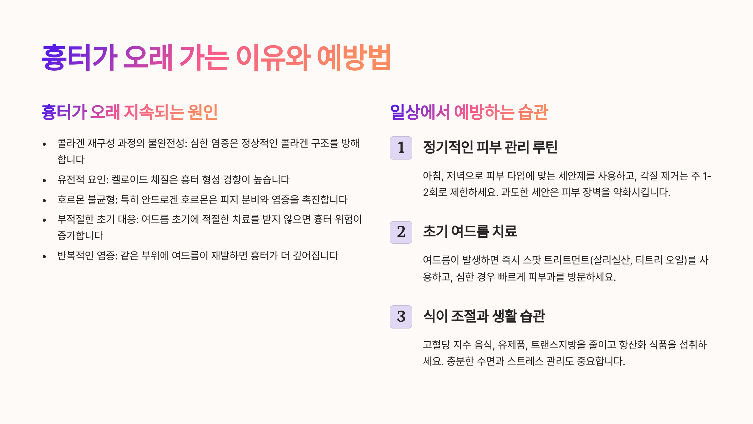 ⏱ 흉터가 오래가는 주요 원인 정리