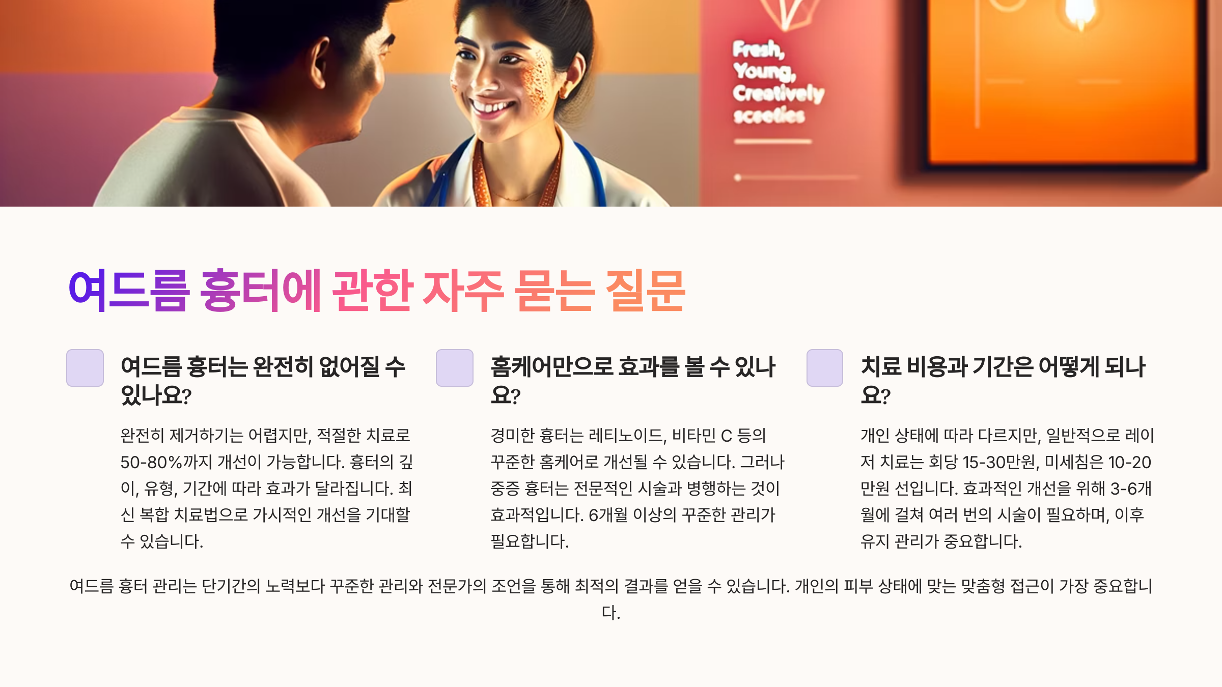 Q3. 여드름 흉터 치료는 언제 시작하는 게 좋나요?