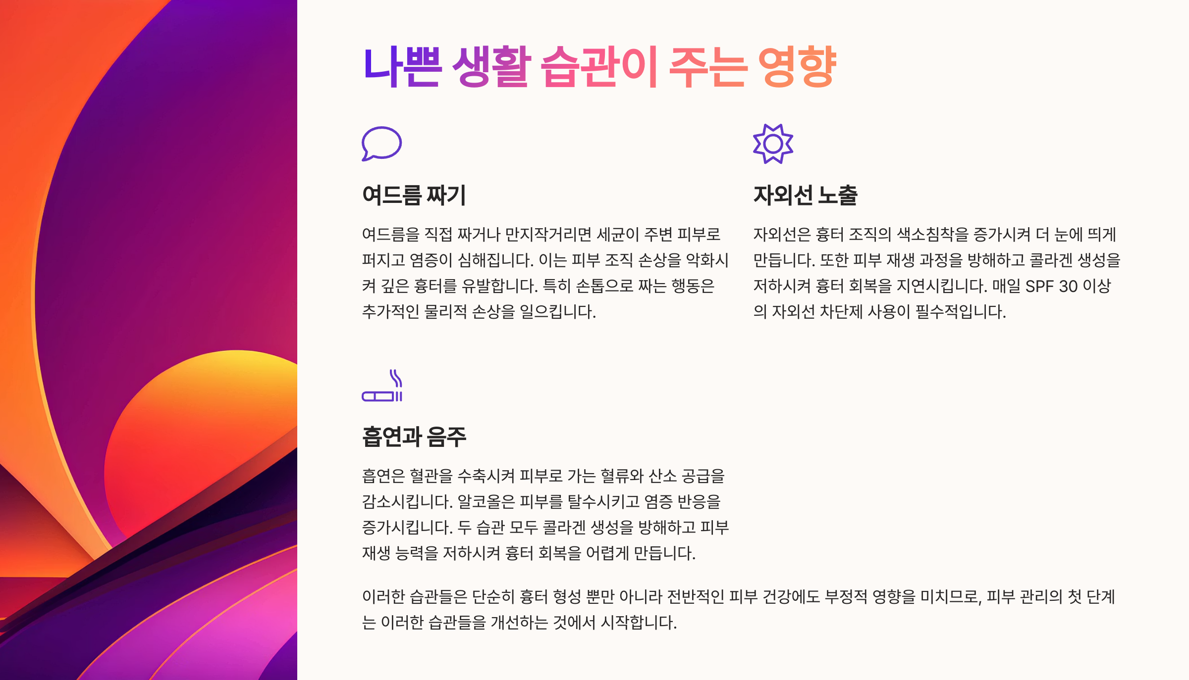 🚫 흉터를 악화시키는 생활 습관