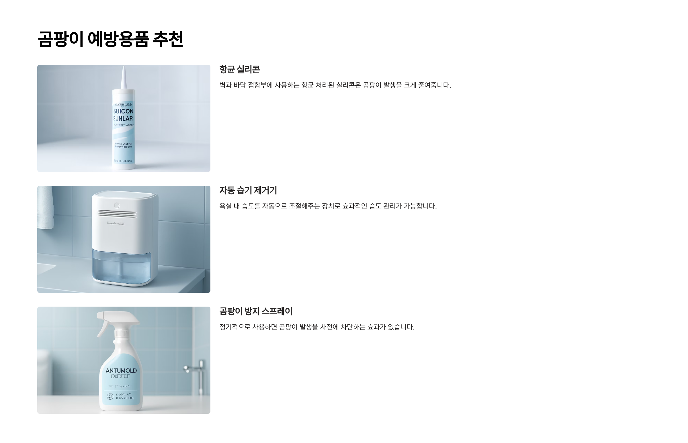 특히, 곰팡이는 한 번 생기면 제거도 어렵고, 위생적으로도 문제가 생기기 때문에 처음부터 차단하는 게 핵심이에요.