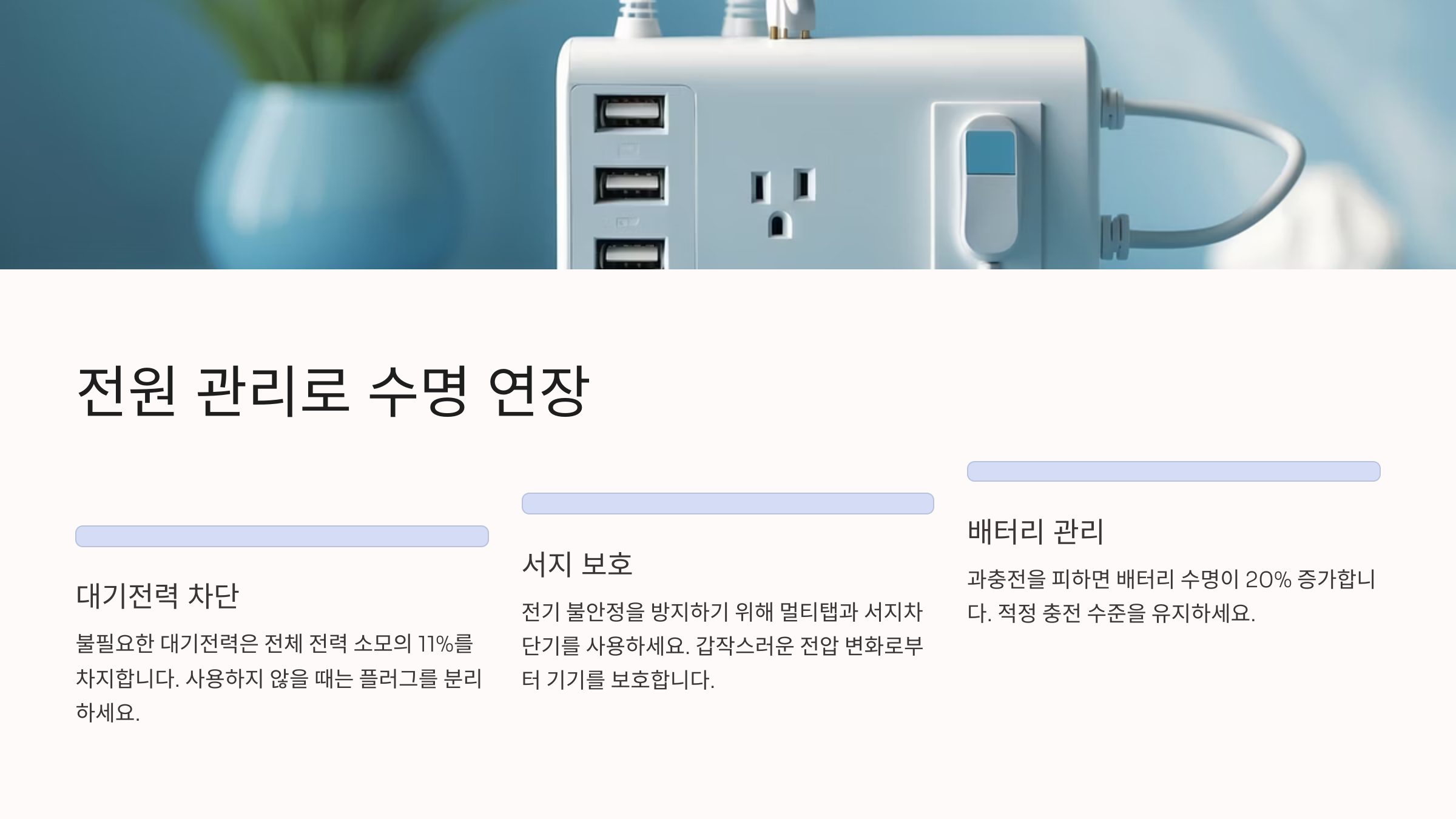위의 표처럼, 제품별로 전원 관리 습관을 정리해두면 도움이 많이 돼요. 간단해 보이지만 고장을 예방하고, 전기료도 아낄 수 있답니다! 😊