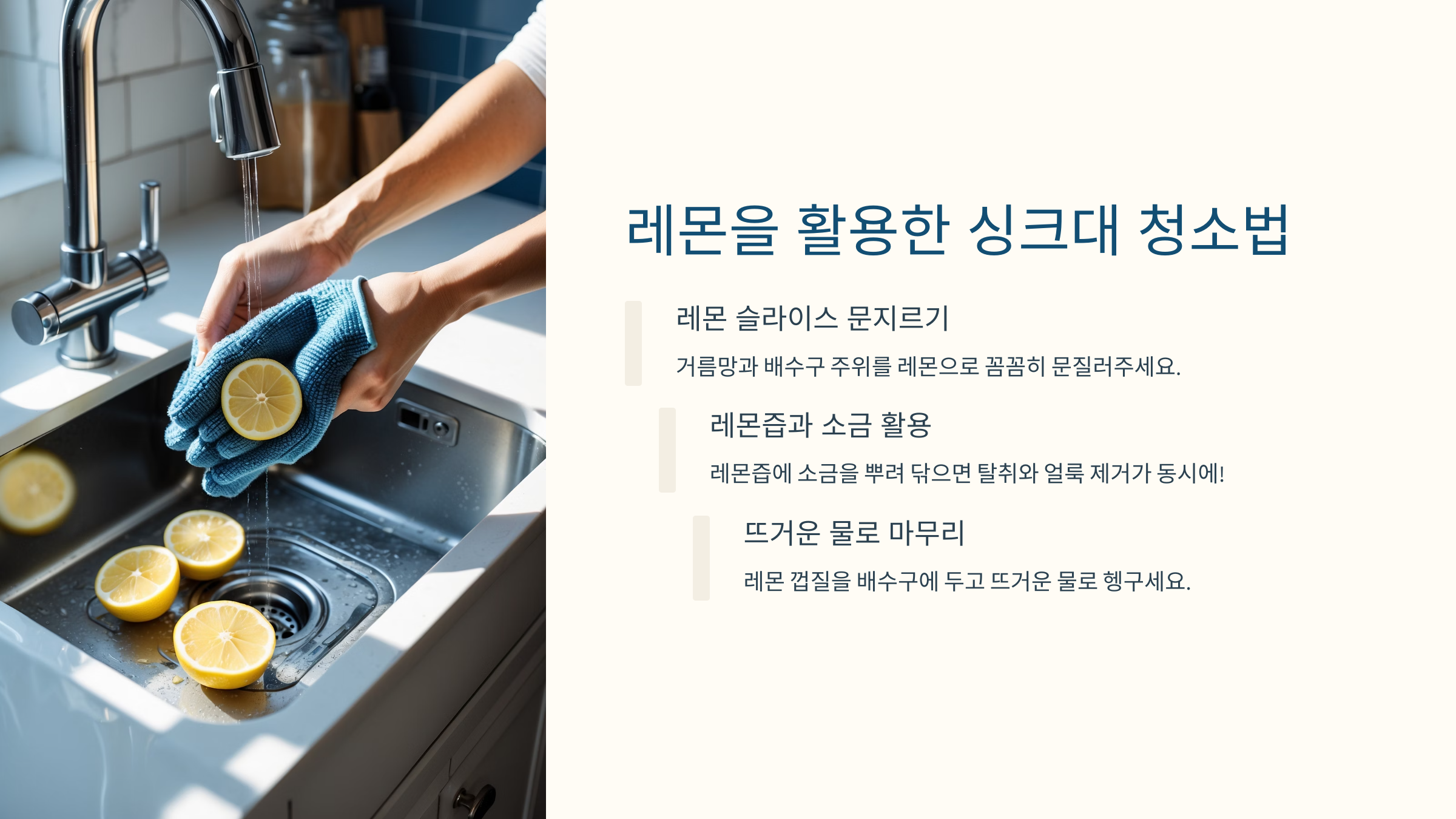레몬을 활용한 싱크대 냄새 제거법은 정말 간단하면서도 효과가 확실해요. 특별한 도구 없이도 바로 실천할 수 있답니다.