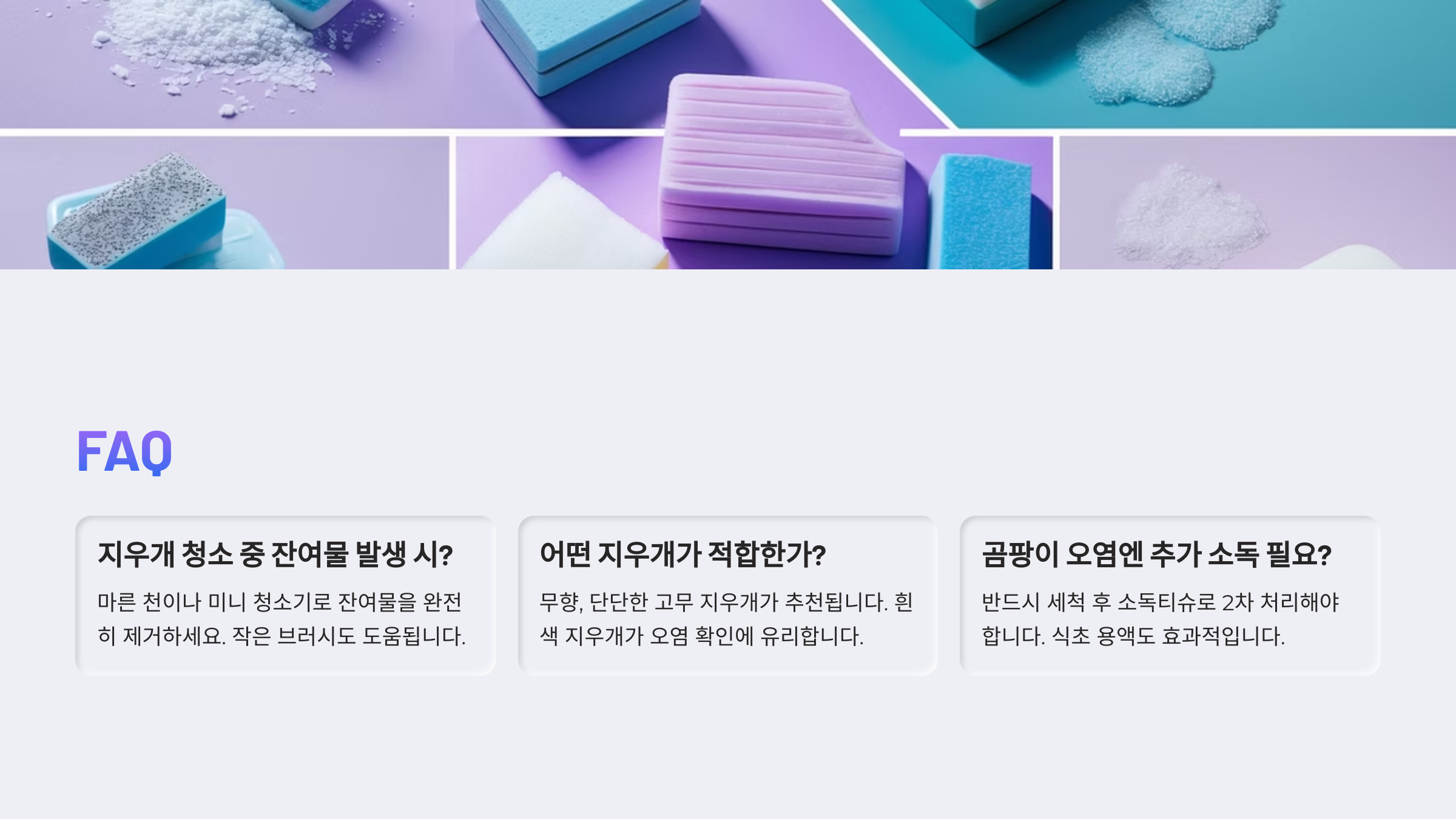 A3. 물론이에요! 작은 솔이나 칫솔도 좋지만, 지우개는 틈새에 더 효과적이에요.