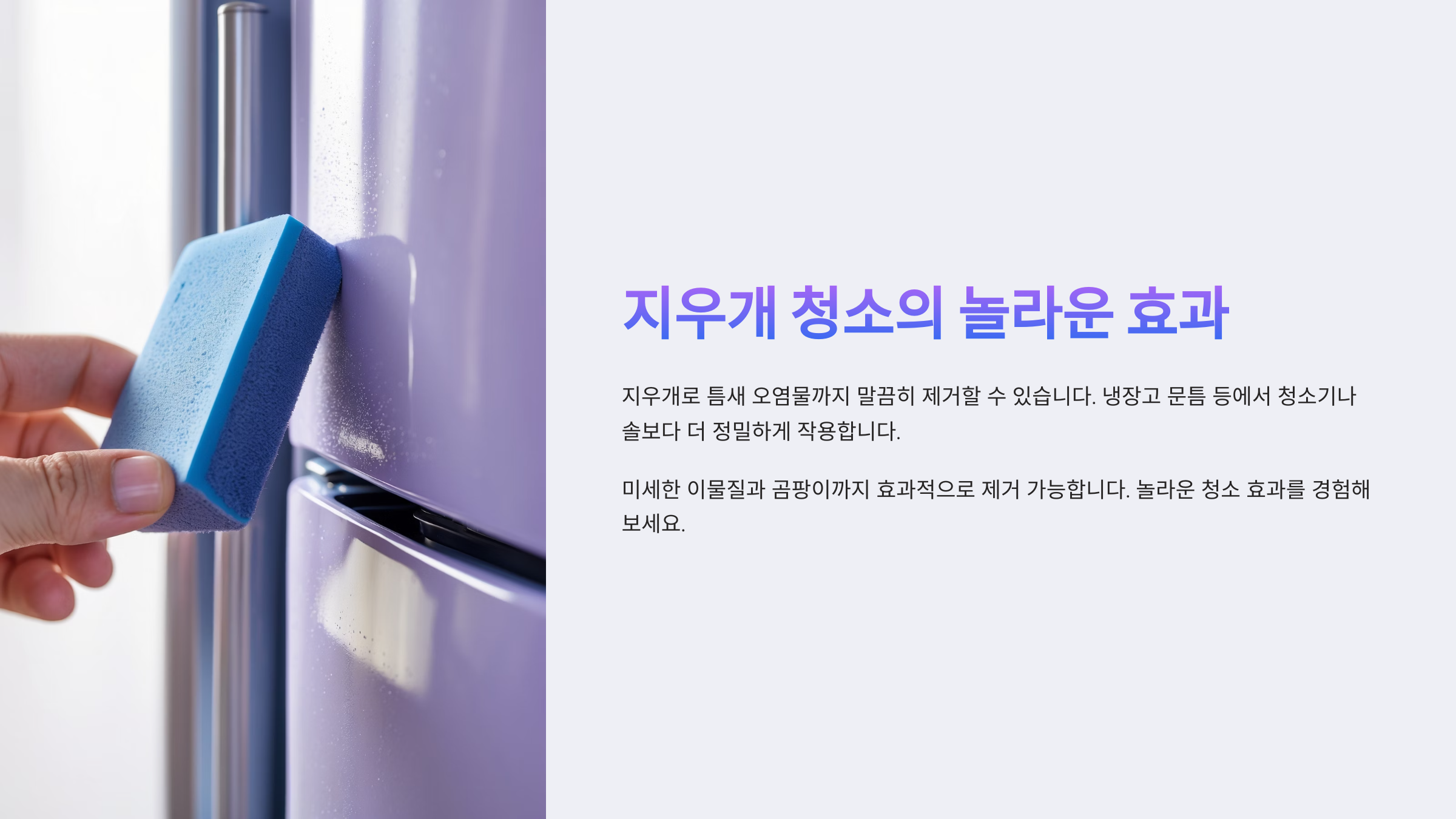 지우개를 사용하면 청소가 끝나고 나서도 틈새가 긁혀서 상처가 나거나 마모되는 걱정이 없어요. 지우개는 부드럽지만 이물질을 강하게 잡아주기 때문에, 냉장고의 재질에 손상 없이 청소할 수 있답니다. 이게 바로 지우개의 강력한 장점이에요.