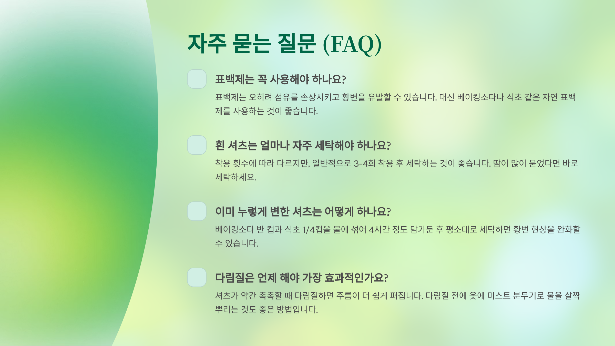 Q8. 지금 바로 할 수 있는 흰 셔츠 관리법이 있나요?