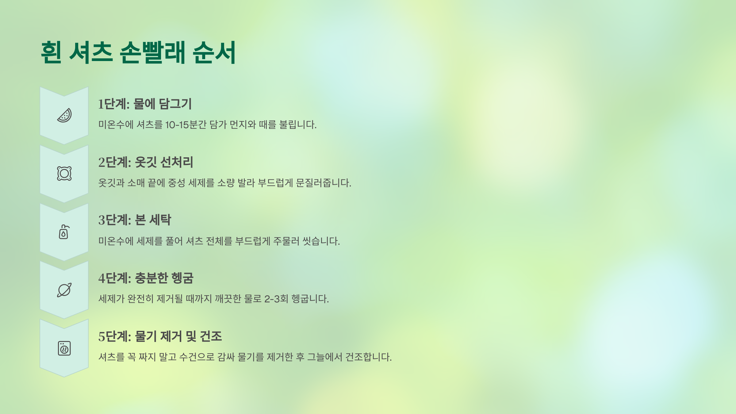 다음은 본격적으로 흰 셔츠를 어떻게 손빨래해야 하는지 알려드릴게요. 단계별로 쉽게 따라할 수 있도록 정리했어요.