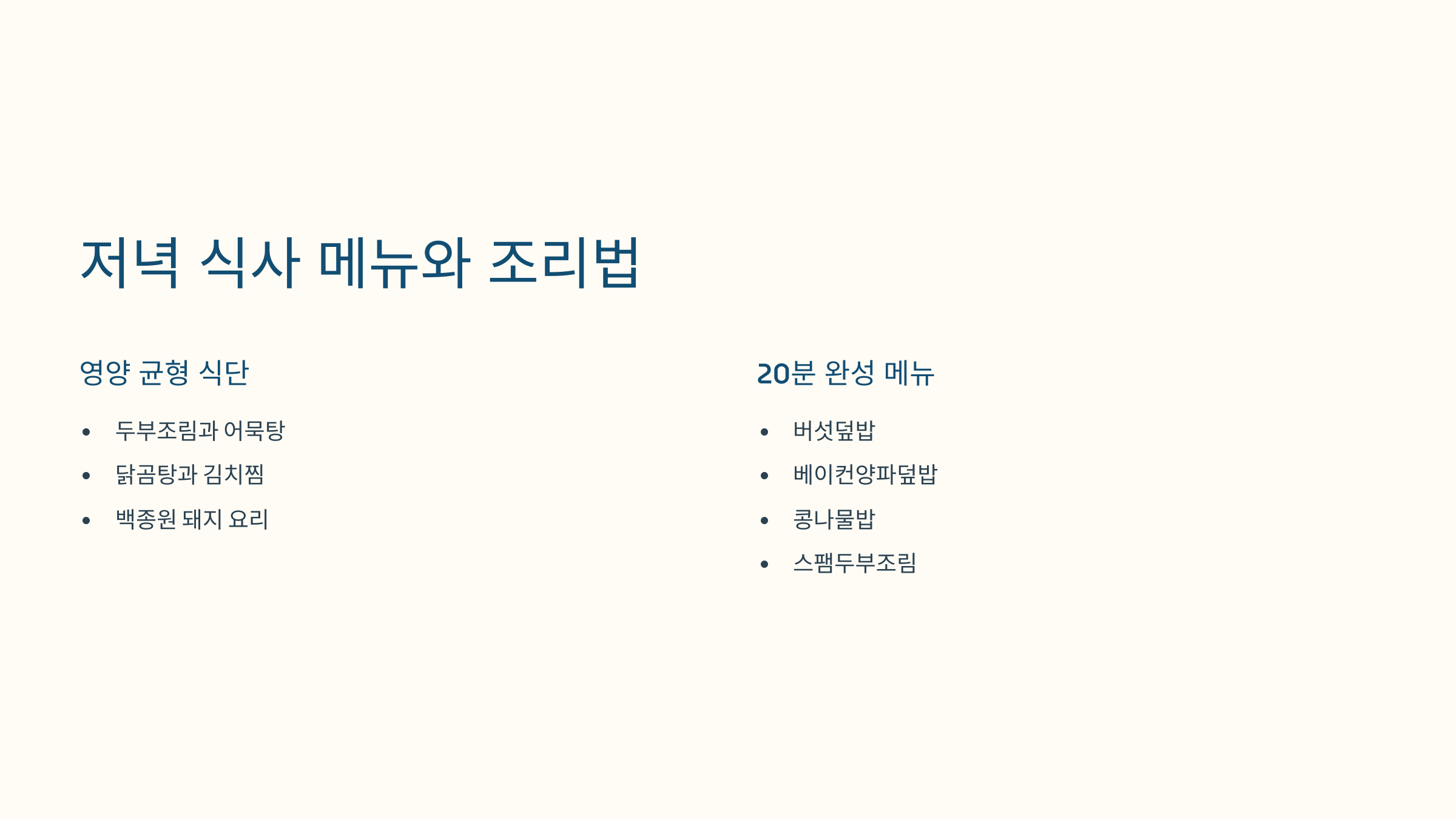 | 저녁 메뉴 | 영양 균형과 식단 분석 | 사진과 함께 기록 |
