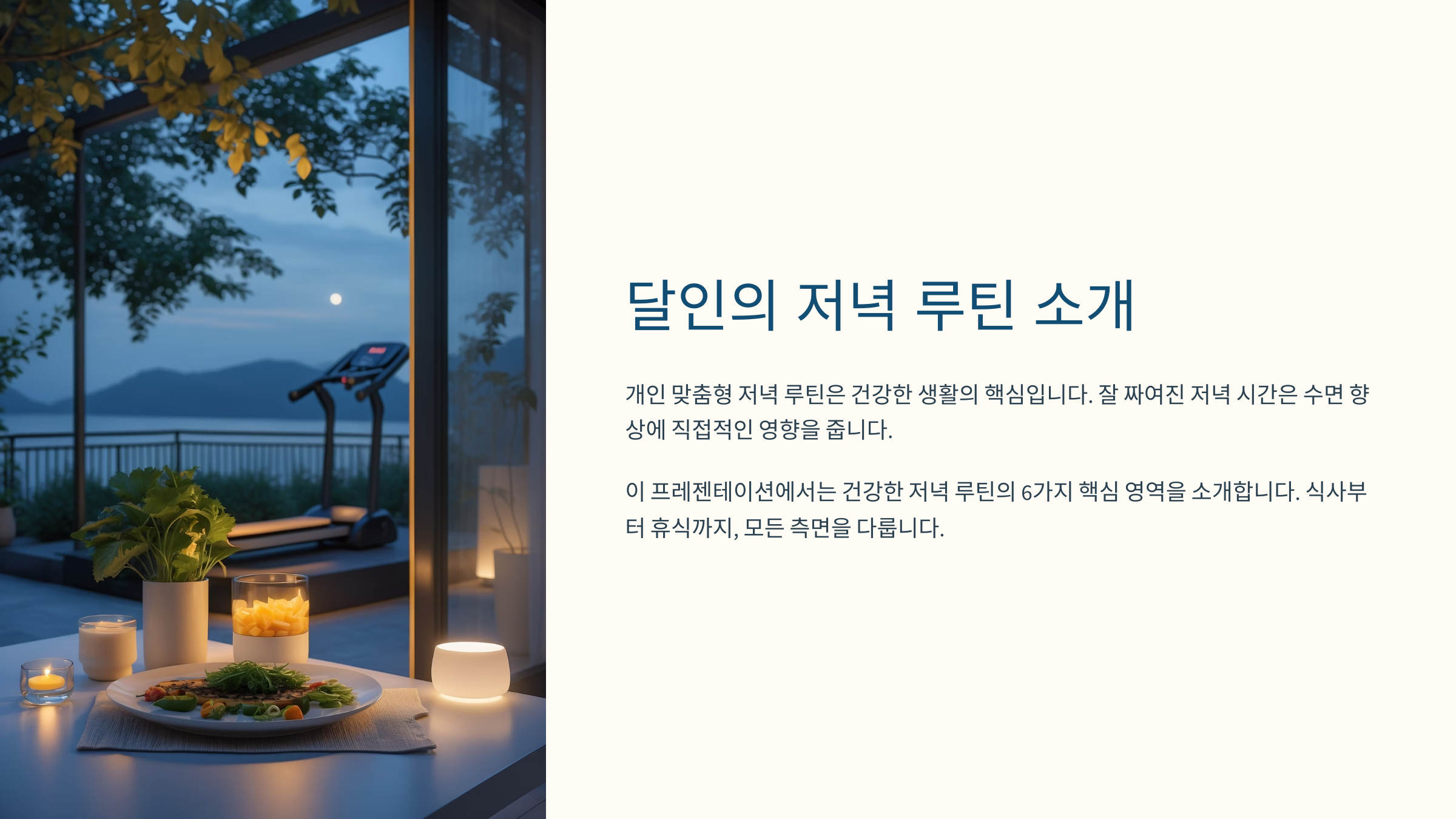 나의 느낌으로 말하자면, 저녁 루틴은 단순히 음식을 먹는 것이 아니라, 하루의 피로를 풀고 내일을 준비하는 작은 의식 같아요.