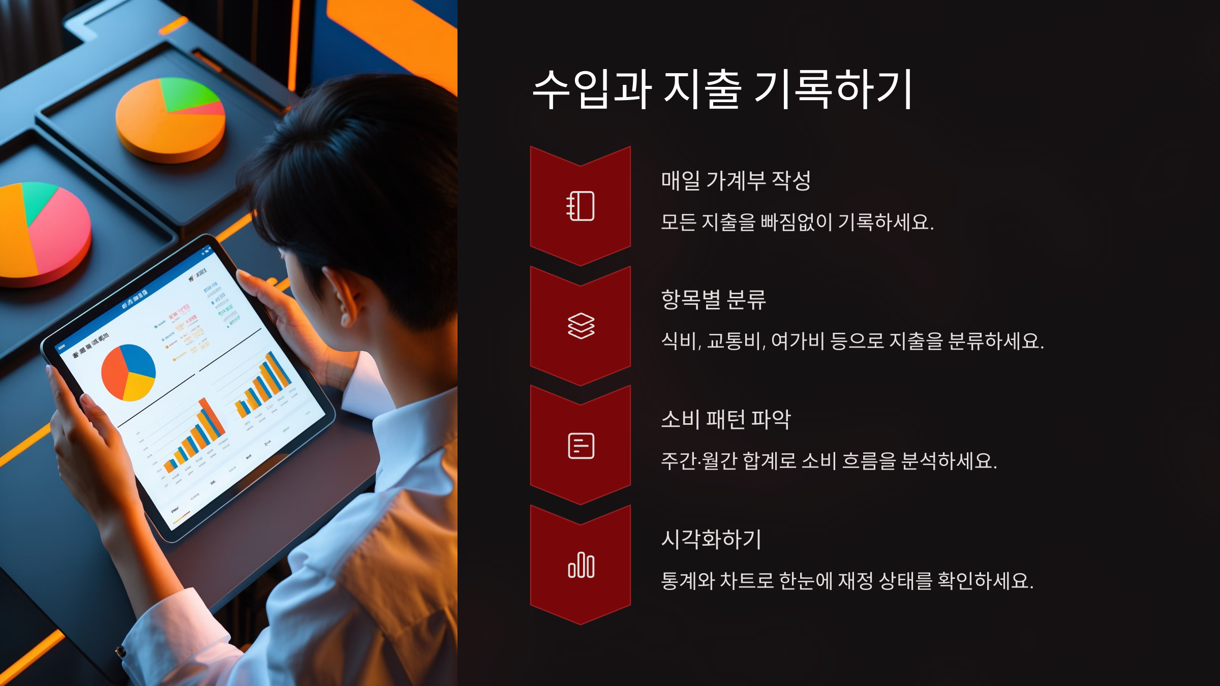 첫 번째로 가장 중요한 습관은 바로 가계부를 적는 것이에요. 작은 금액이라도 기록을 해두면 돈이 어디로 가고 있는지 쉽게 알 수 있답니다.