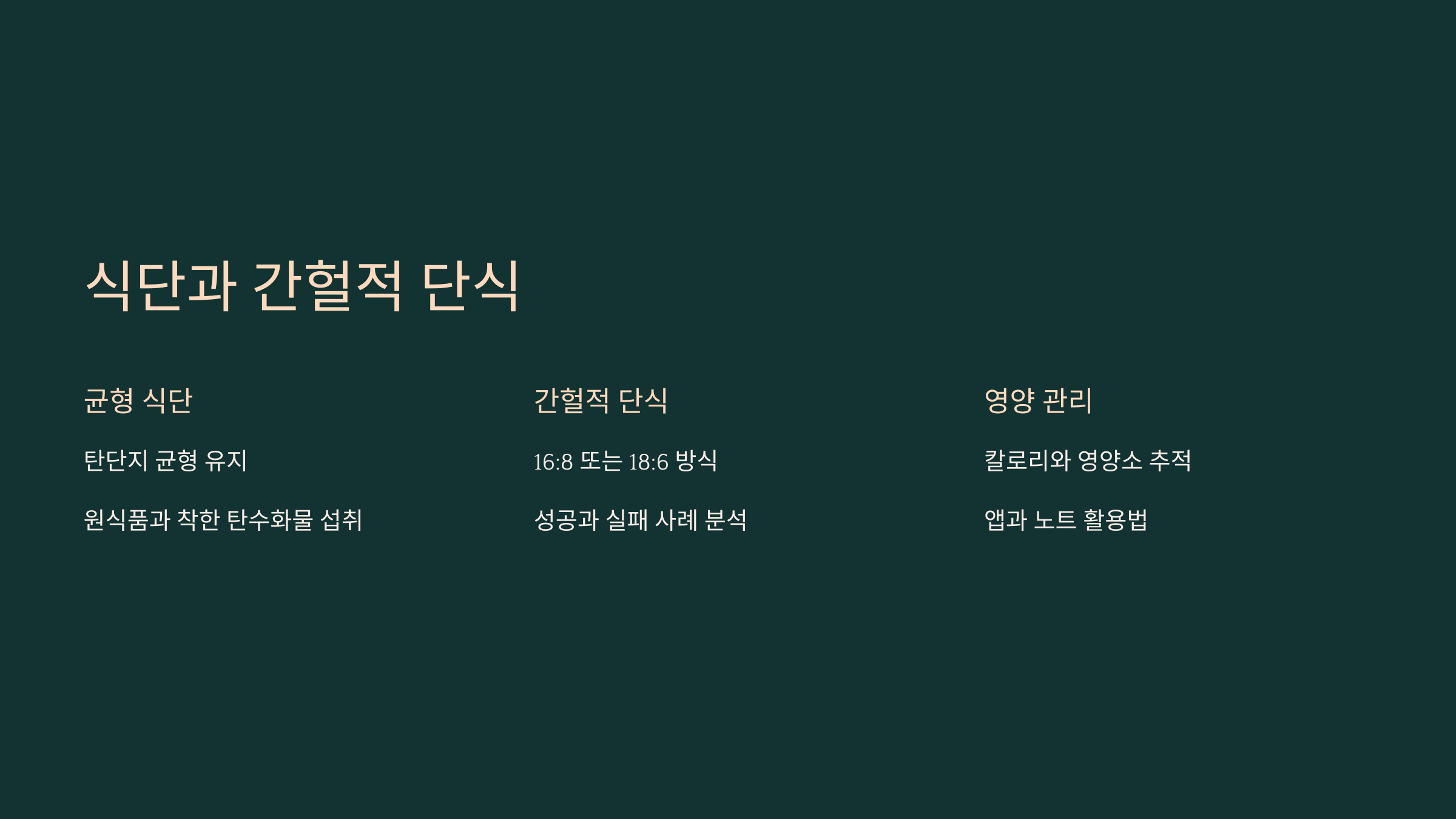결국 식단은 ‘지속 가능성’이 핵심이에요. 내 몸이 좋아하는 방식으로, 무리하지 않고 평생 이어갈 수 있어야 진짜 다이어트가 된다는 걸 보여줘요.