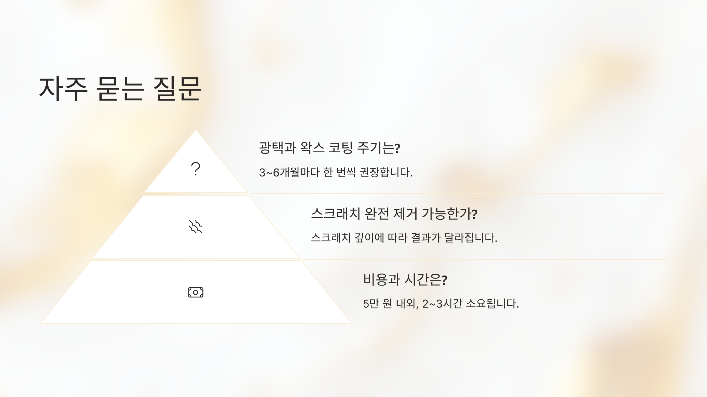 이제 정말 셀프 광택의 모든 과정을 끝냈어요! 다음은 실수 없이 마무리하는 팁들과 자주 묻는 질문들을 정리한 섹션으로 이어집니다. 📚